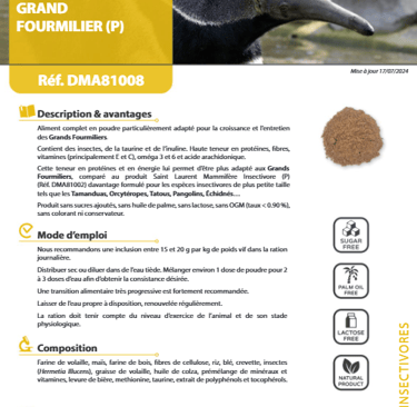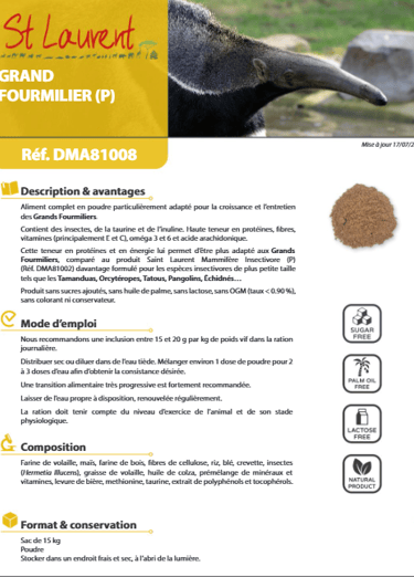 Aujourd'hui, il existe des poudres élaborées par plusieurs marques pour les fourmiliers. La majorité parcs zoologiques se tournent vers cette solution comme base d'alimentation.