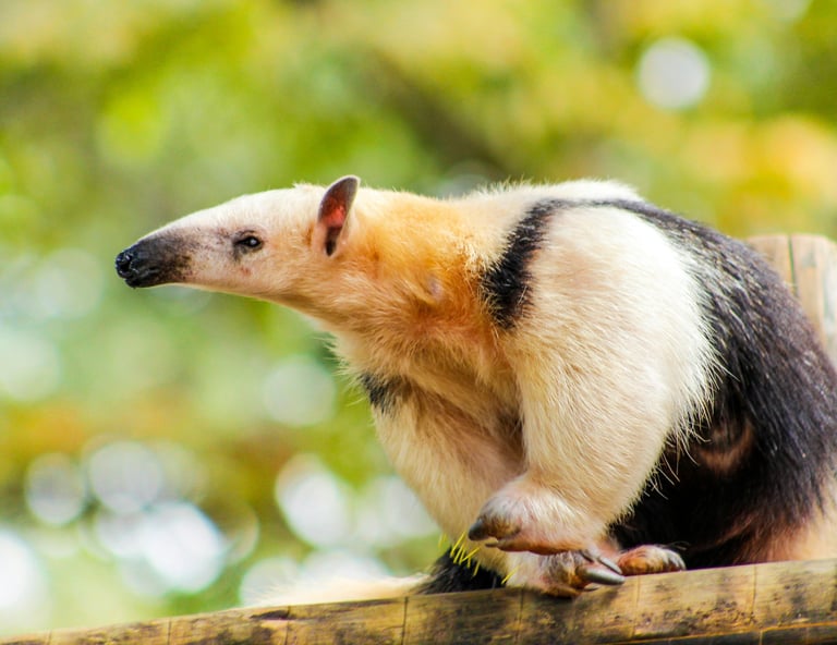 Sa vue est limitée mais il possède une très bonne ouïe. Lorsqu'il se sent menacé, le tamandua n'hésite pas à se dresser sur ses pattes arrière pour utiliser ses puissantes griffes sur les pattes avant.